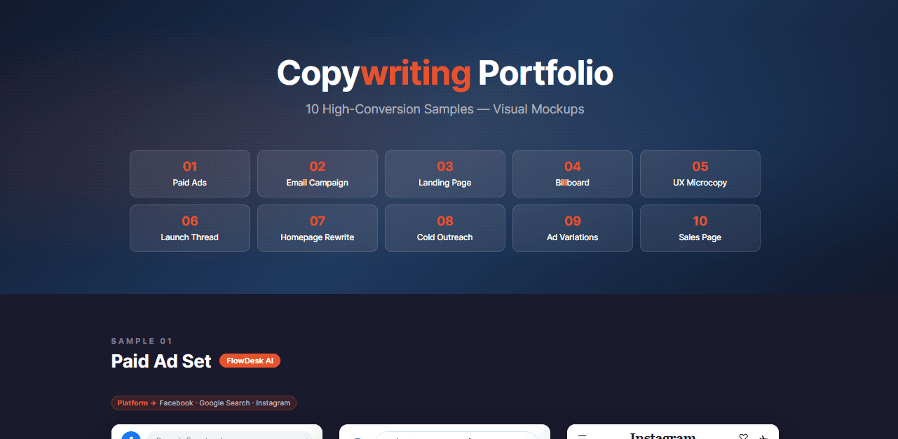 Ads, landing pages, email sequences, UX copy, sales pages, and billboard concepts. If it needs to persuade someone to act, this is where I live.